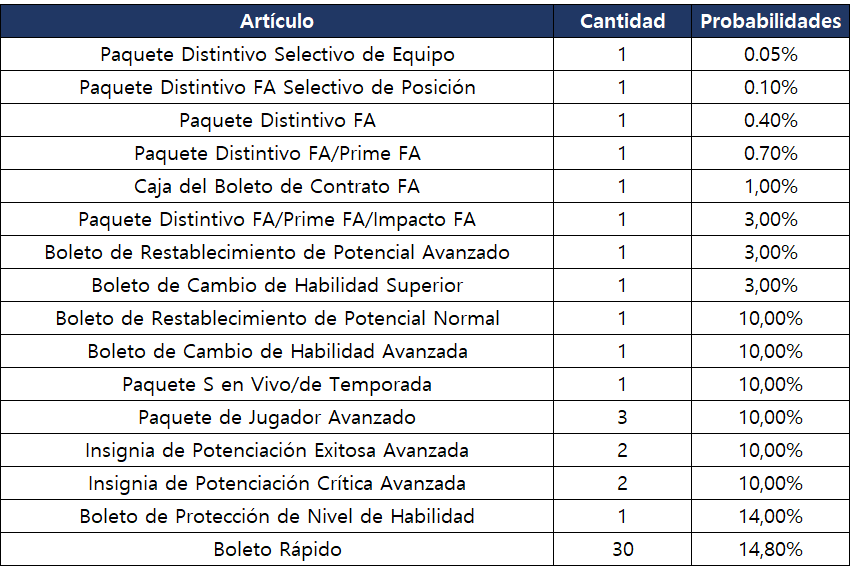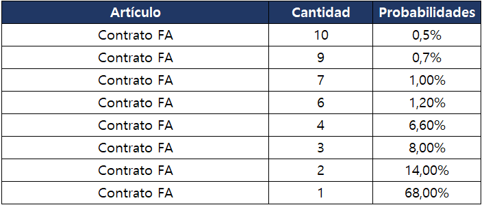 - Puedes obtener uno de los artículos de componentes con una cierta probabilidad.