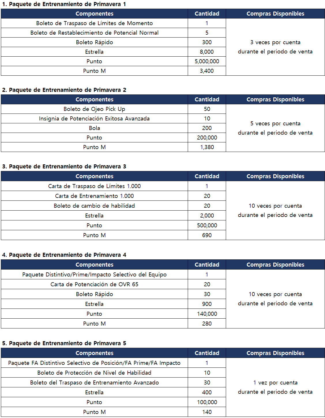 [Aviso] Aviso de Venta del Paquete de Entrenamiento de Primavera