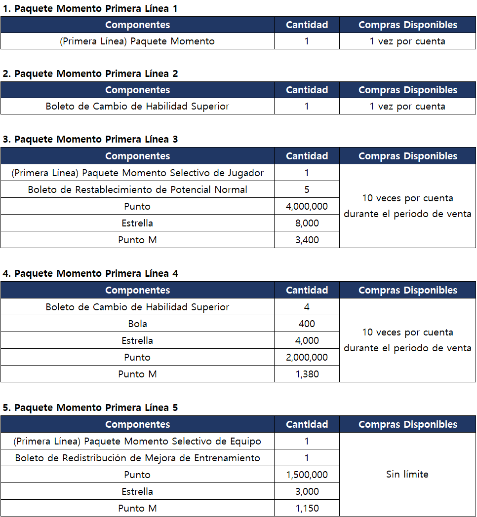 * En el Paquete Momento obtenido del Paquete Momento Primera Línea, solo se puede obtener la Carta (Primera Línea).