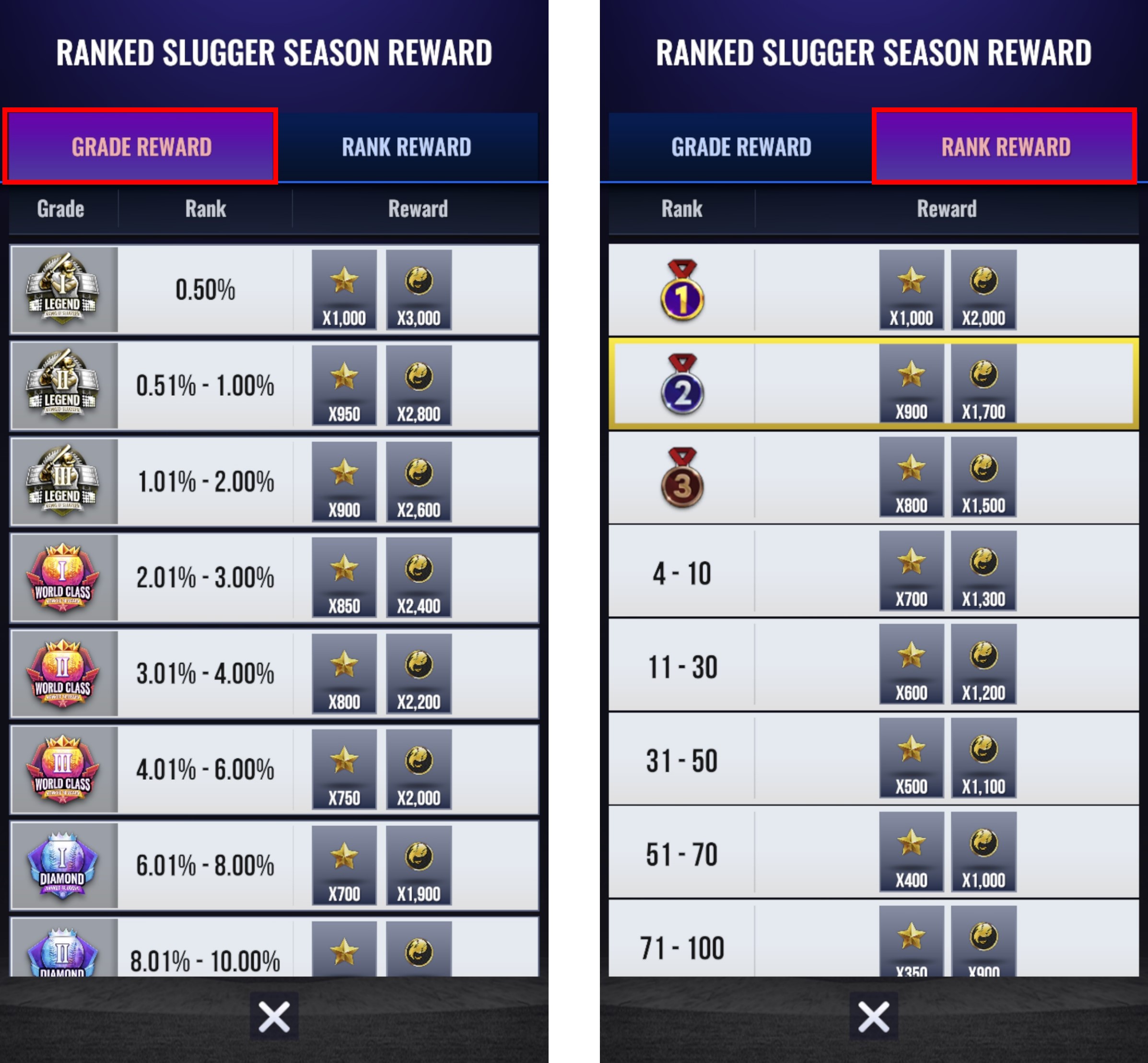 ⑤ Se muestran las recompensas de Bateador Poderoso.