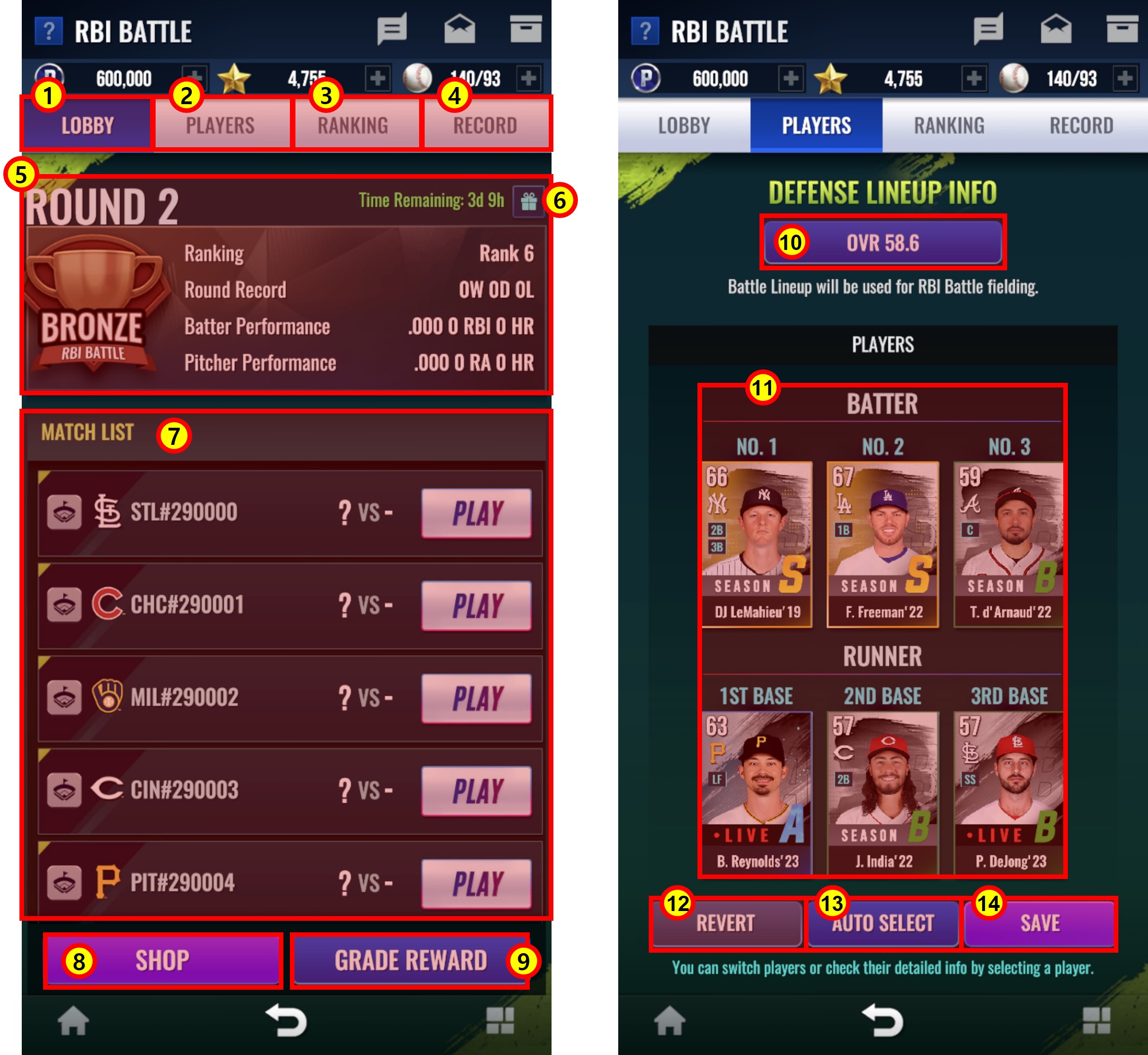 ① Echa un vistazo a la información de la temporada y a la lista de partidos de la ronda y juega a Batalla de Carreras Impulsadas.