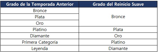 · Si has terminado la Ronda 10 de la Temporada 1.ª como el 1.er Puesto en el grado Primera Categoría, podrás ascender al nivel Leyenda y el último grado de la temporada 1.ª será Leyenda. Empezarás en el grado Diamante en la siguiente temporada.
