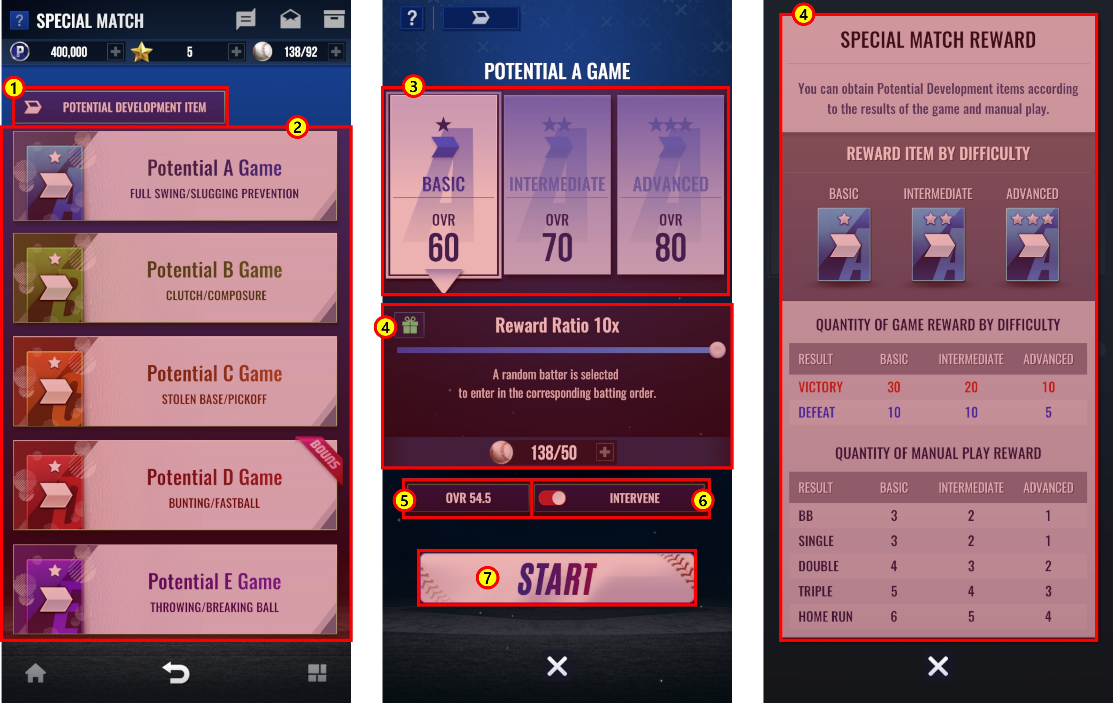 - Se pueden obtener Notas de Potencial según el resultado del partido y la proporción de recompensa.