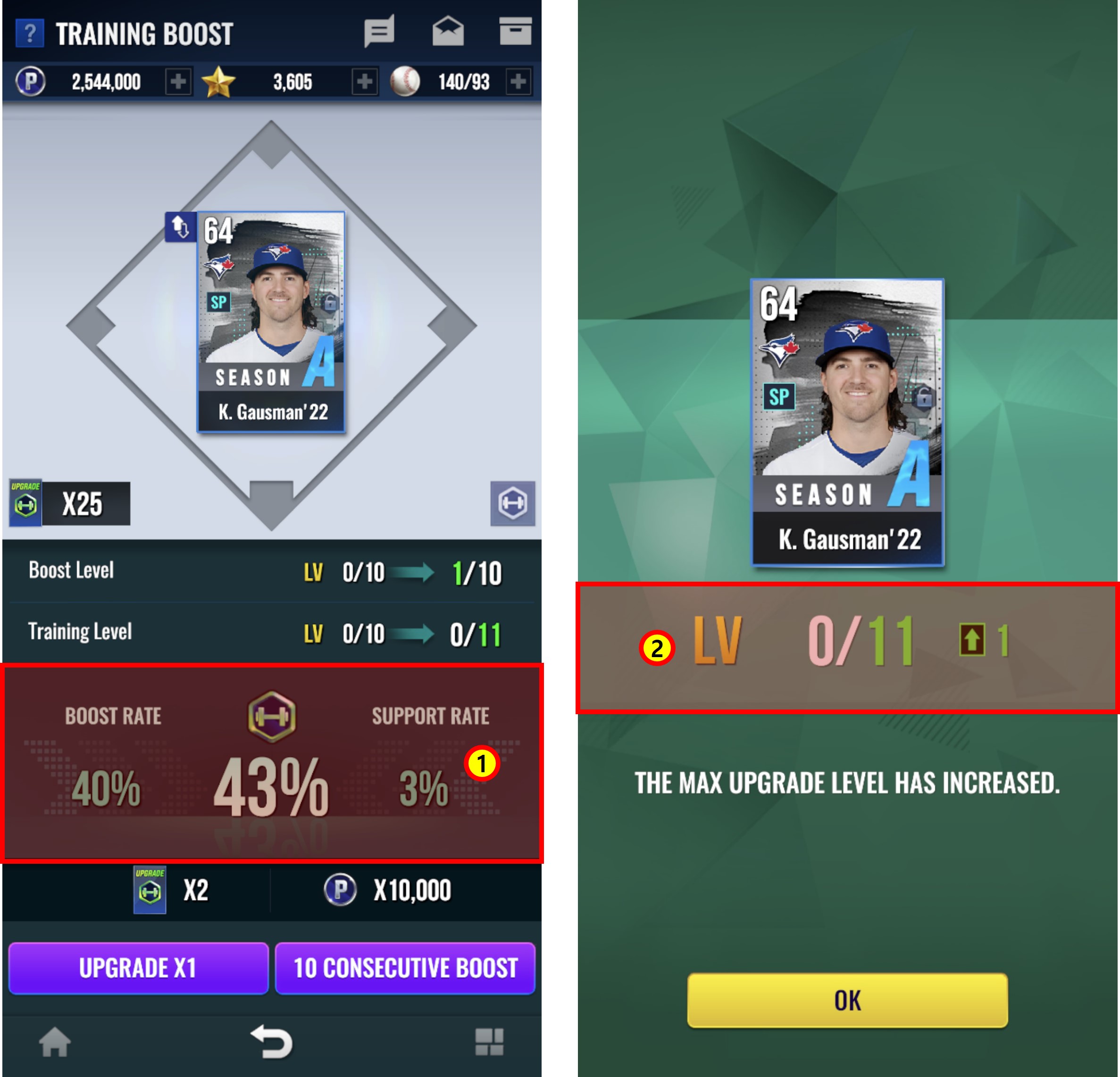 ② Si consigues un Traspaso de Entrenamiento, aumentará el nivel máximo de entrenamiento.