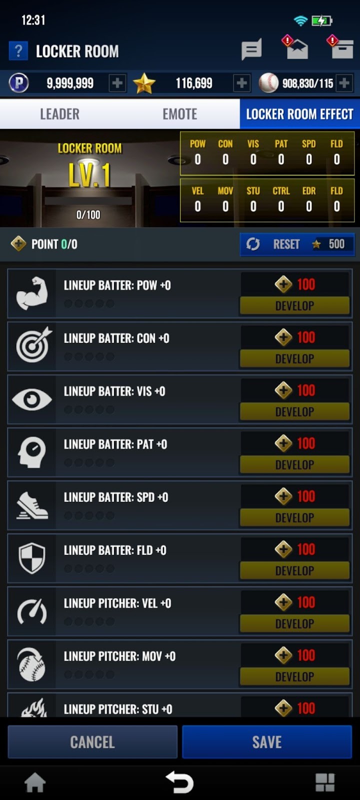 - Al utilizar los “Puntos del Vestuario” obtenidos, podrás otorgar estadísticas a los jugadores de tu alineación.