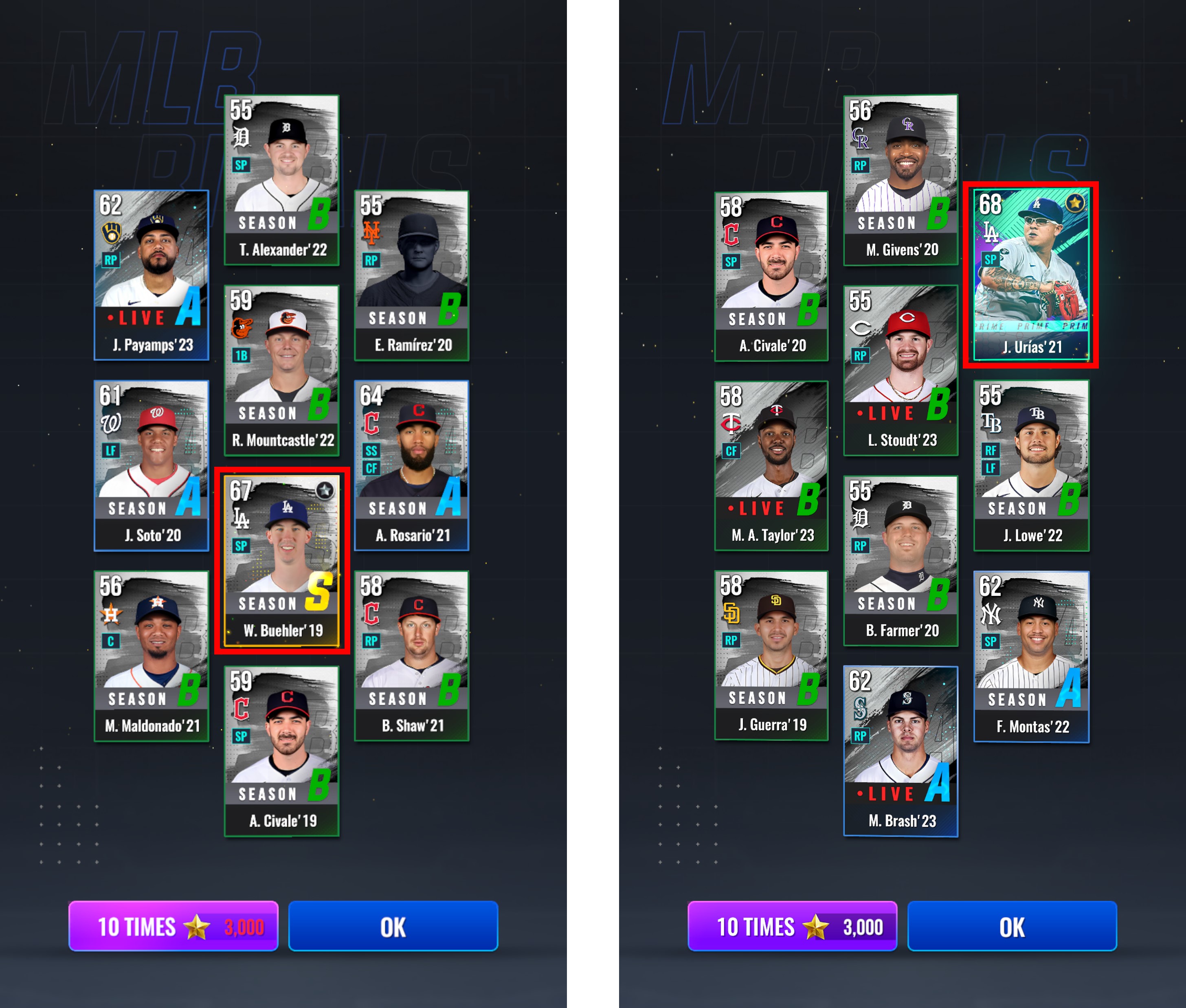 - Se añadirán las Cartas de Distintiva, Prime y de Impacto de los jugadores de la siguiente lista.