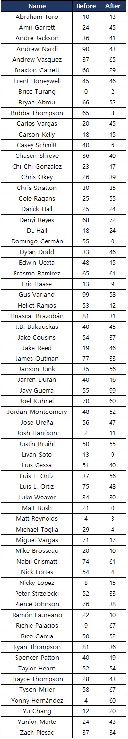 - アップデート後、MLBライセンス規約によって一部の選手はスカウトおよびカードパックで獲得できなくなります。