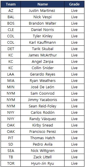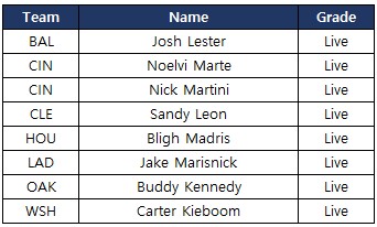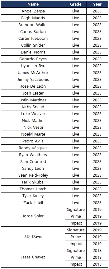- 以下のリストの選手が新たに追加されます。