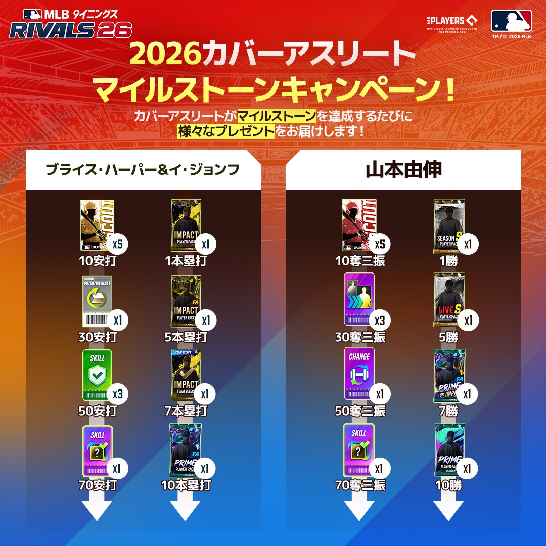 2026シーズンも『MLB 9イニングス RIVALS』と一緒にカバーアスリートの選手を応援しましょう!