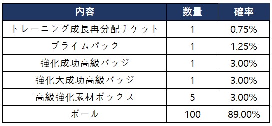 - デイリーギフトボックス1をオープンすると確率に応じてリストのうちの1種類のアイテムを獲得できます。