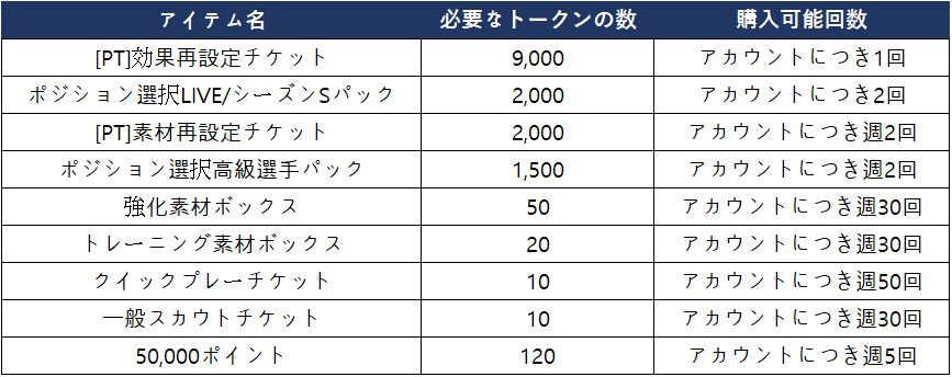 - イベント試合で獲得した「ポジショントレーニングイベント試合トークン」はイベントショップでアイテムに交換できます。