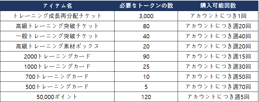 - イベント試合で獲得した「地獄のトレーニングイベント試合トークン」はイベントショップでアイテムに交換できます。