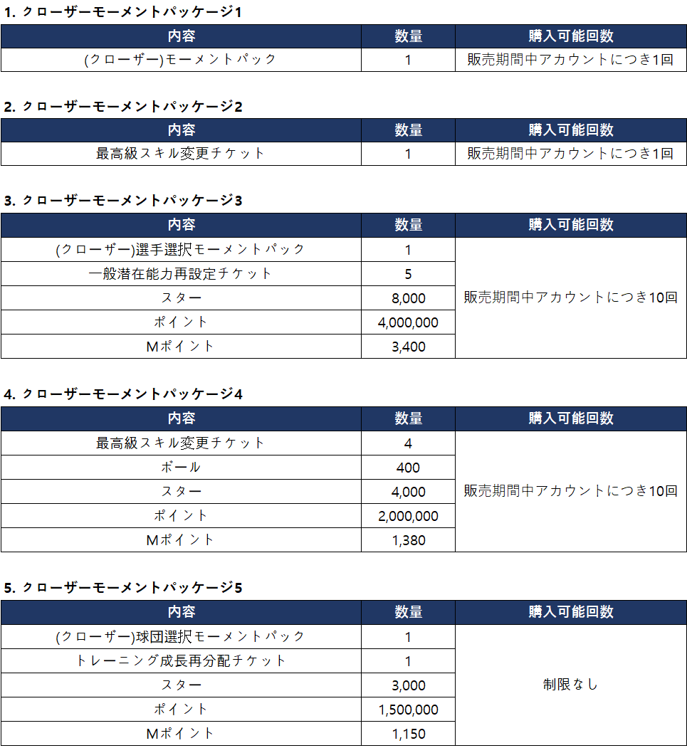 - クローザーモーメントパッケージ1,2はスターで購入できる商品です。