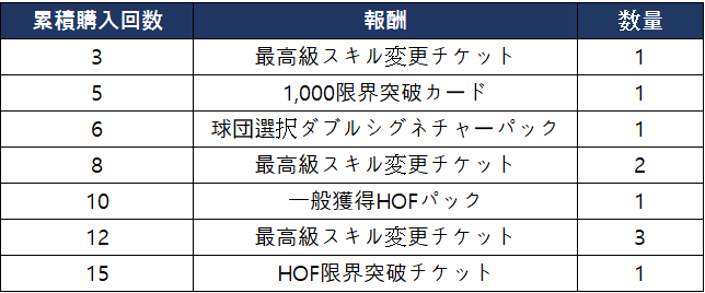 - シーズンパッケージの合計購入回数に応じて以下の報酬を獲得できます。