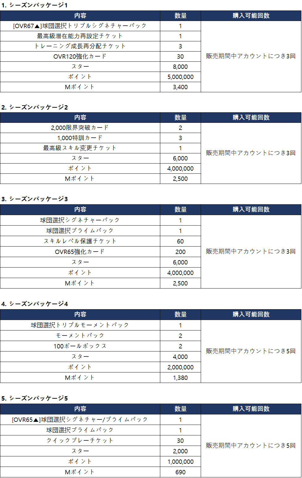 ▼ シーズンパッケージ合計購入報酬