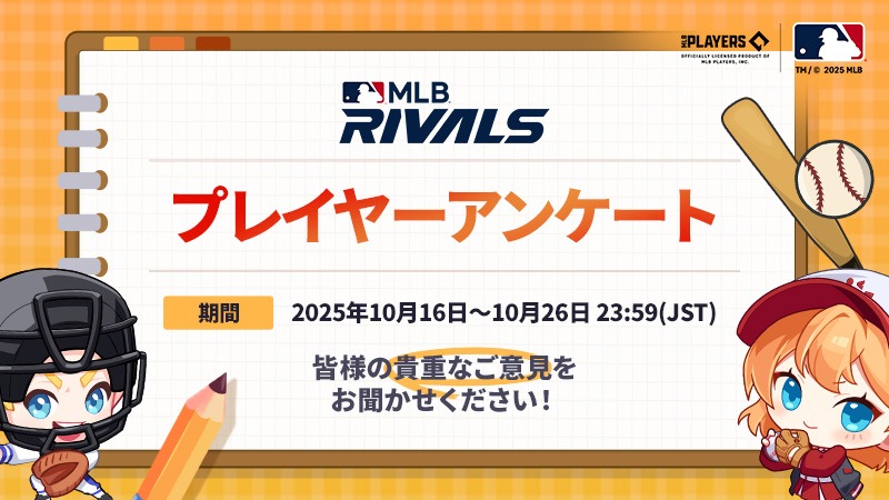 MLB RIVALSプレイヤーアンケート実施のご案内
