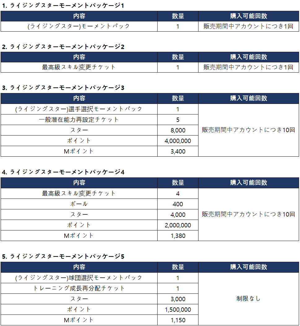 - ライジングスターモーメントパッケージ1,2はスターで購入できる商品です。