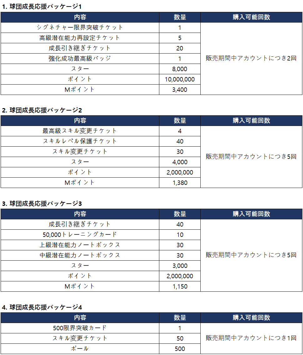 - 球団成長応援パッケージ4は6,000スターで購入可能な商品です。