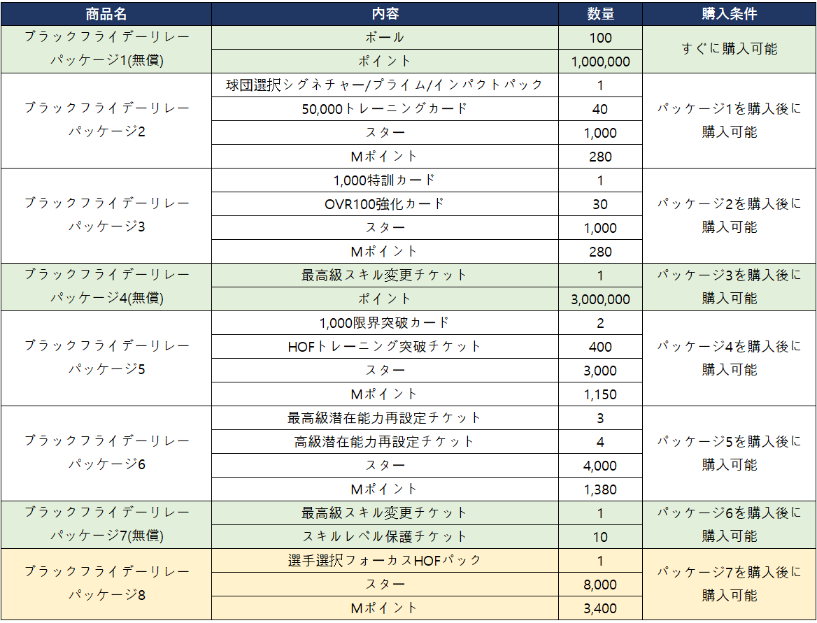 - 各パッケージは、期間中、アカウントにつき1回のみ購入可能です。