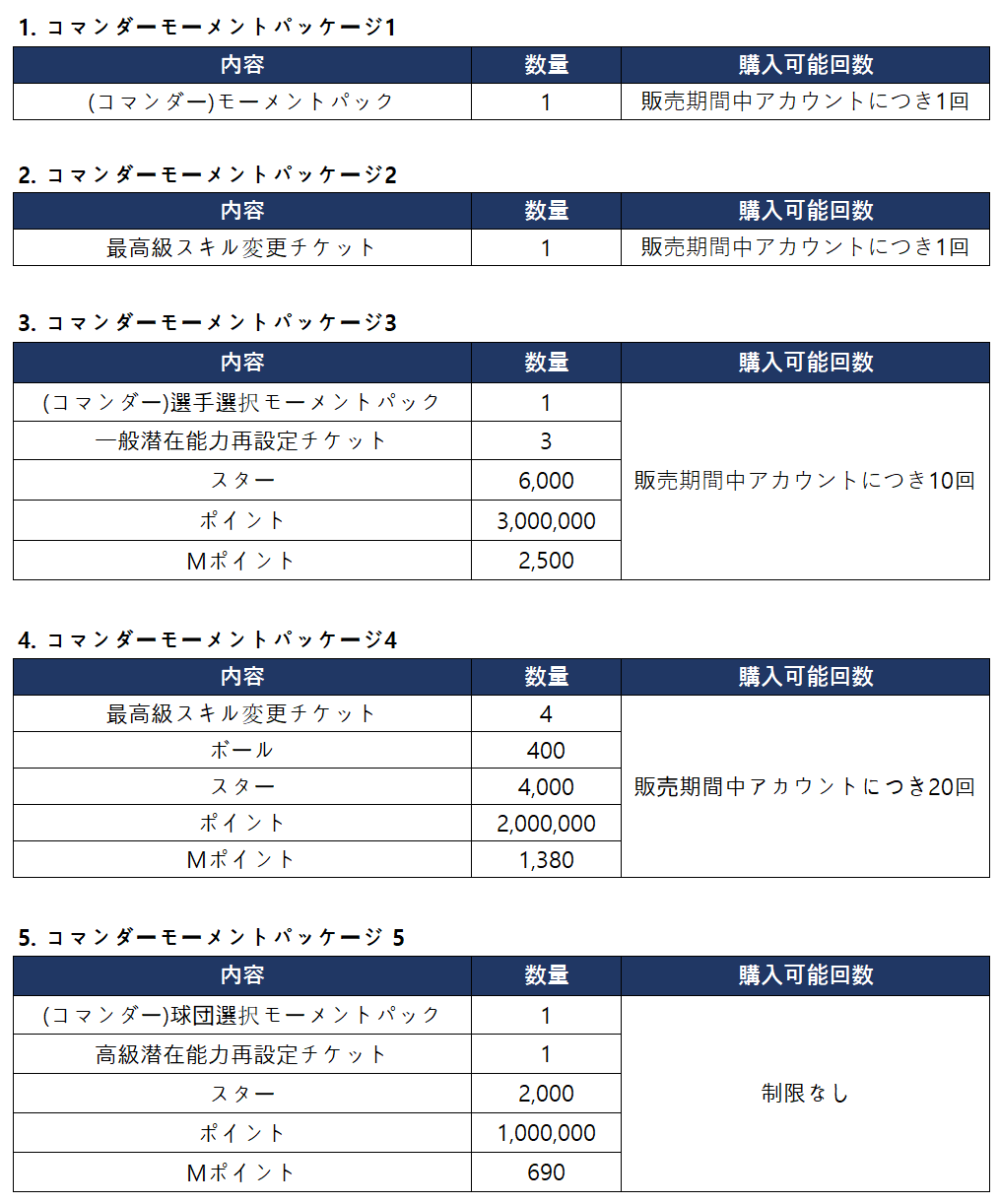 ■ コマンダーモーメントパッケージ販売について