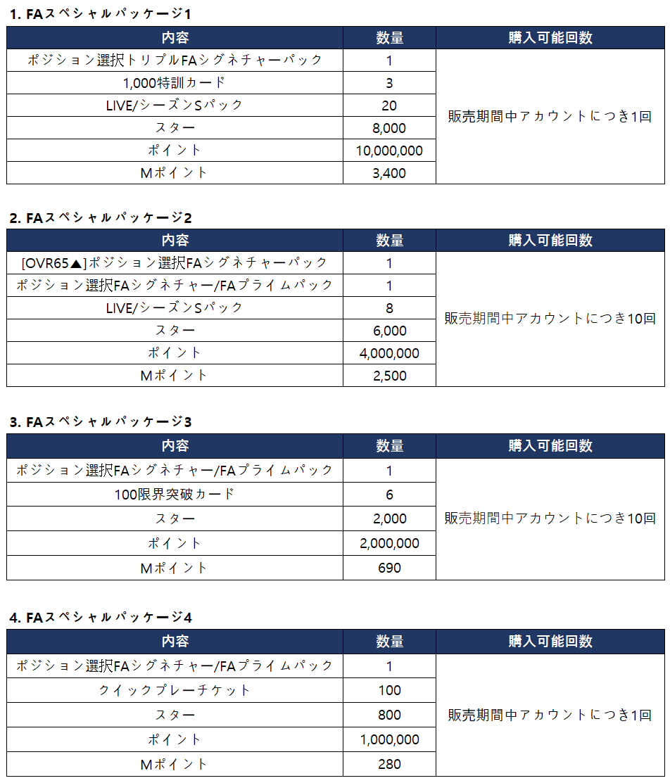 ▼ FAスペシャルパッケージ合計購入報酬