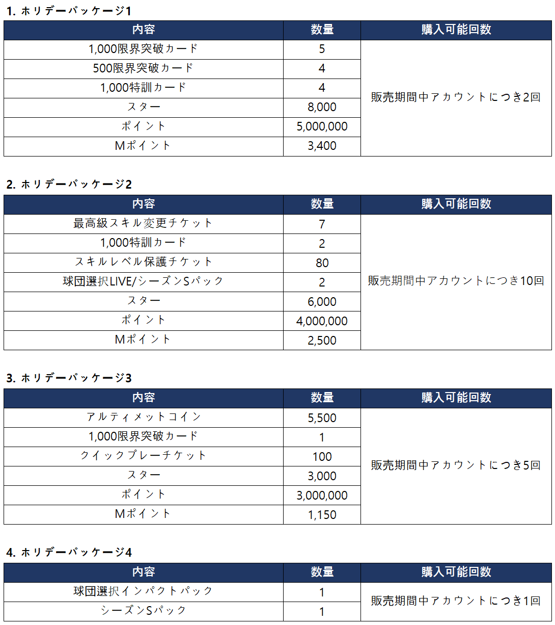 - ホリデーパッケージ4はスターで購入できる商品です。