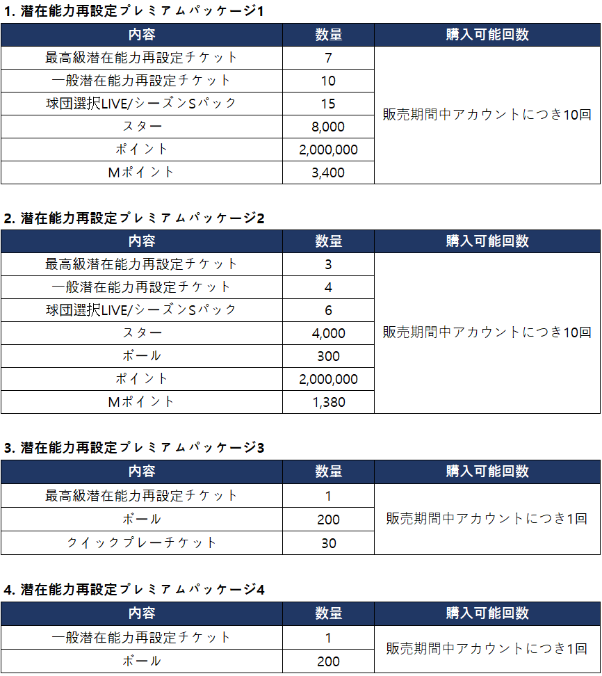 ▼ 潜在能力再設定プレミアムパッケージ合計購入報酬