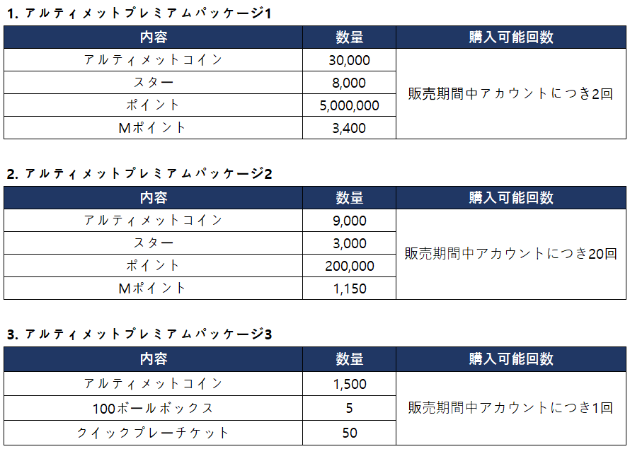 ▼ アルティメットプレミアムパッケージ合計購入報酬