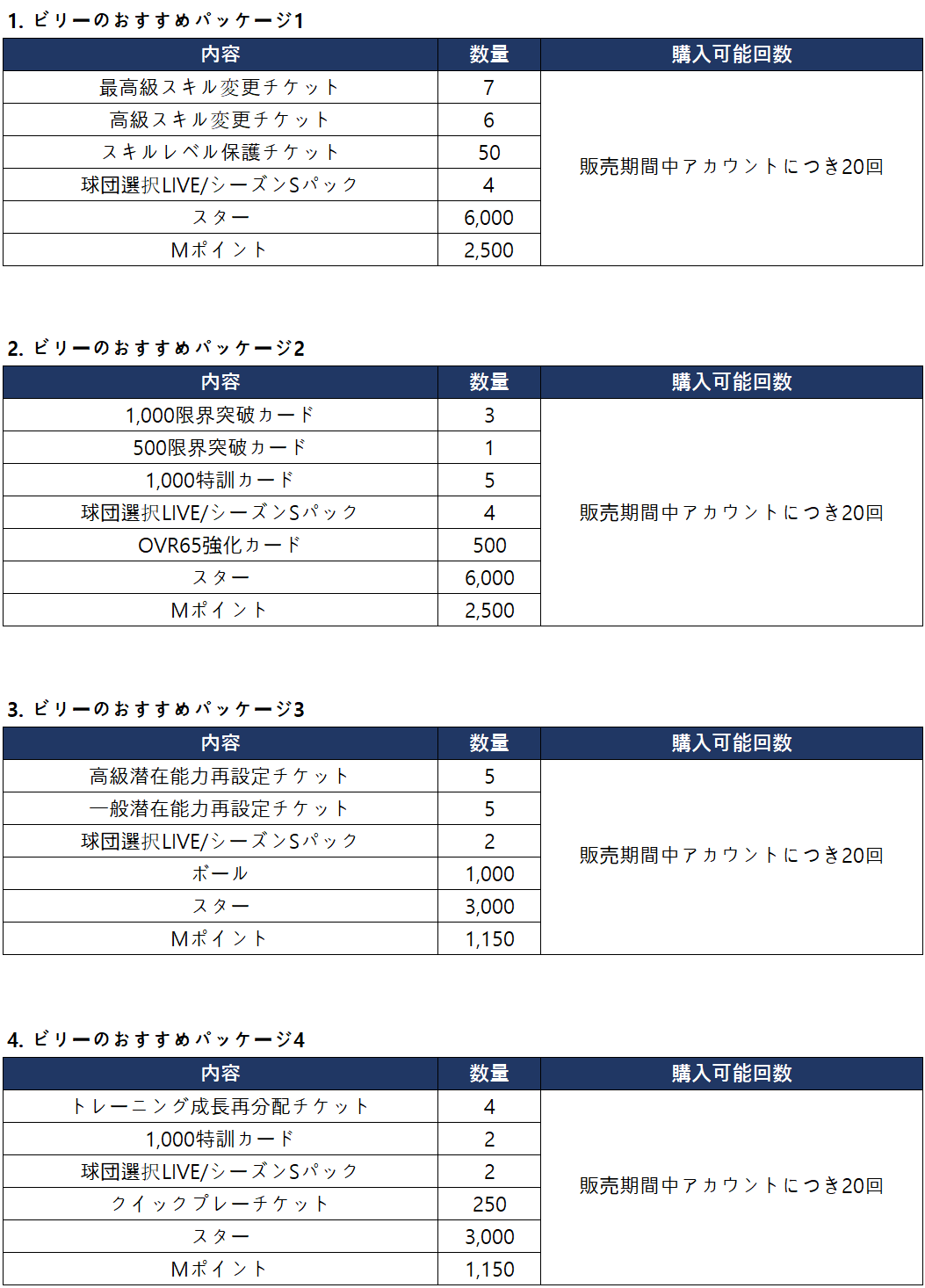 ▼ ビリーのおすすめパッケージ合計購入報酬