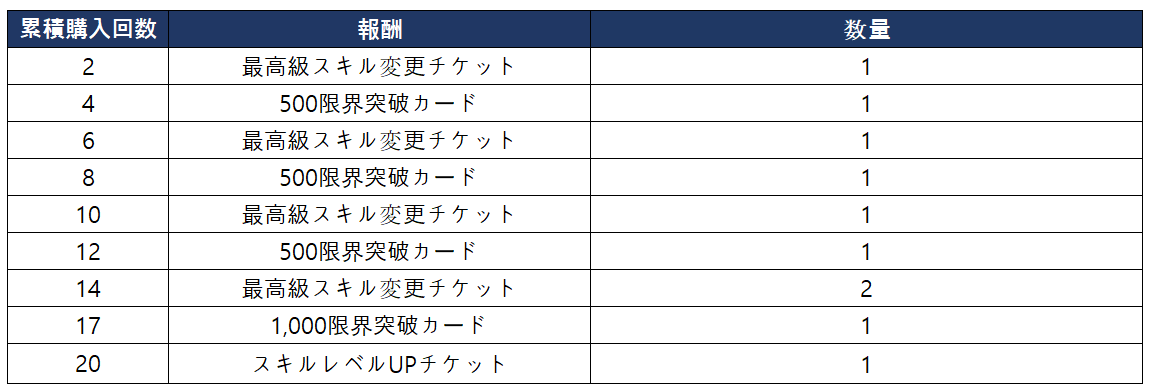 - ビリーのおすすめパッケージの合計購入回数に応じて以下の報酬を獲得できます。
