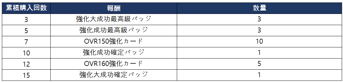 - 合計購入回数に応じて以下の報酬を獲得できます。