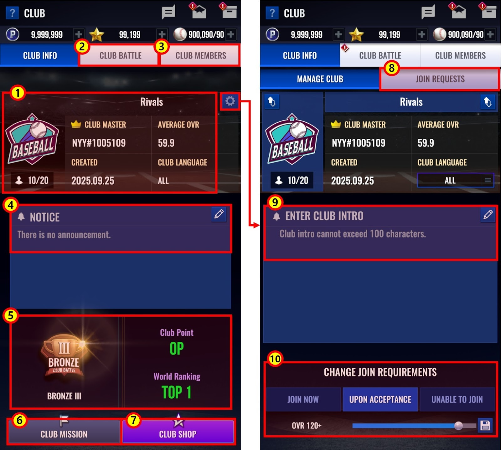 - クラブ対戦にはクラブメンバーが10人以上所属しているクラブのみ参加できます。