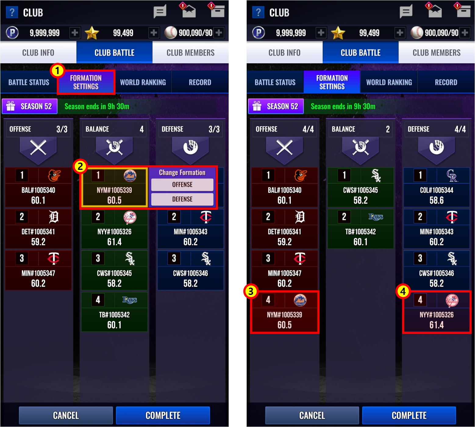 - 攻撃/守備陣形のクラブメンバーはOVRが公開された状態でラウンドを進行します。2つの陣形の人数は1:1の比率で設定する必要があります。