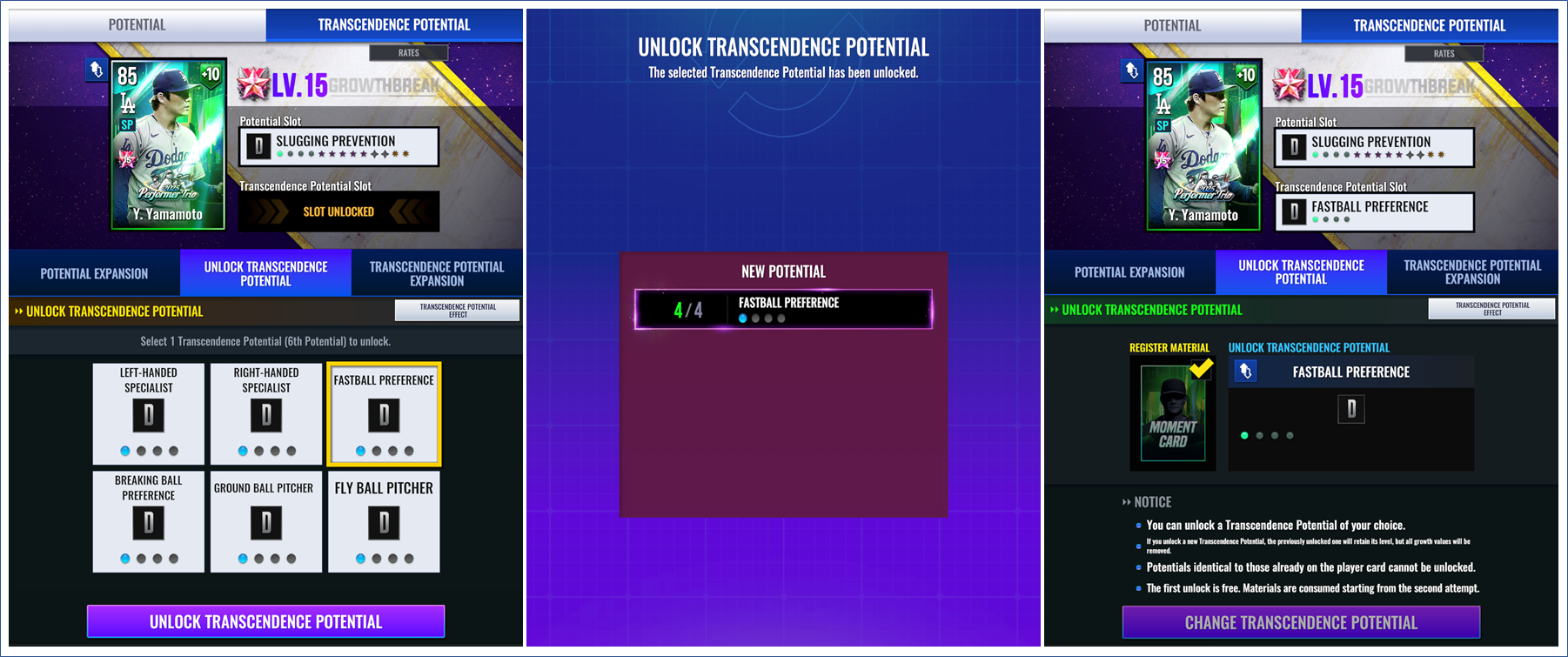 - 最初の解放は無償で行え、その後は素材を消費することで他の超越潜在能力に変更できます。