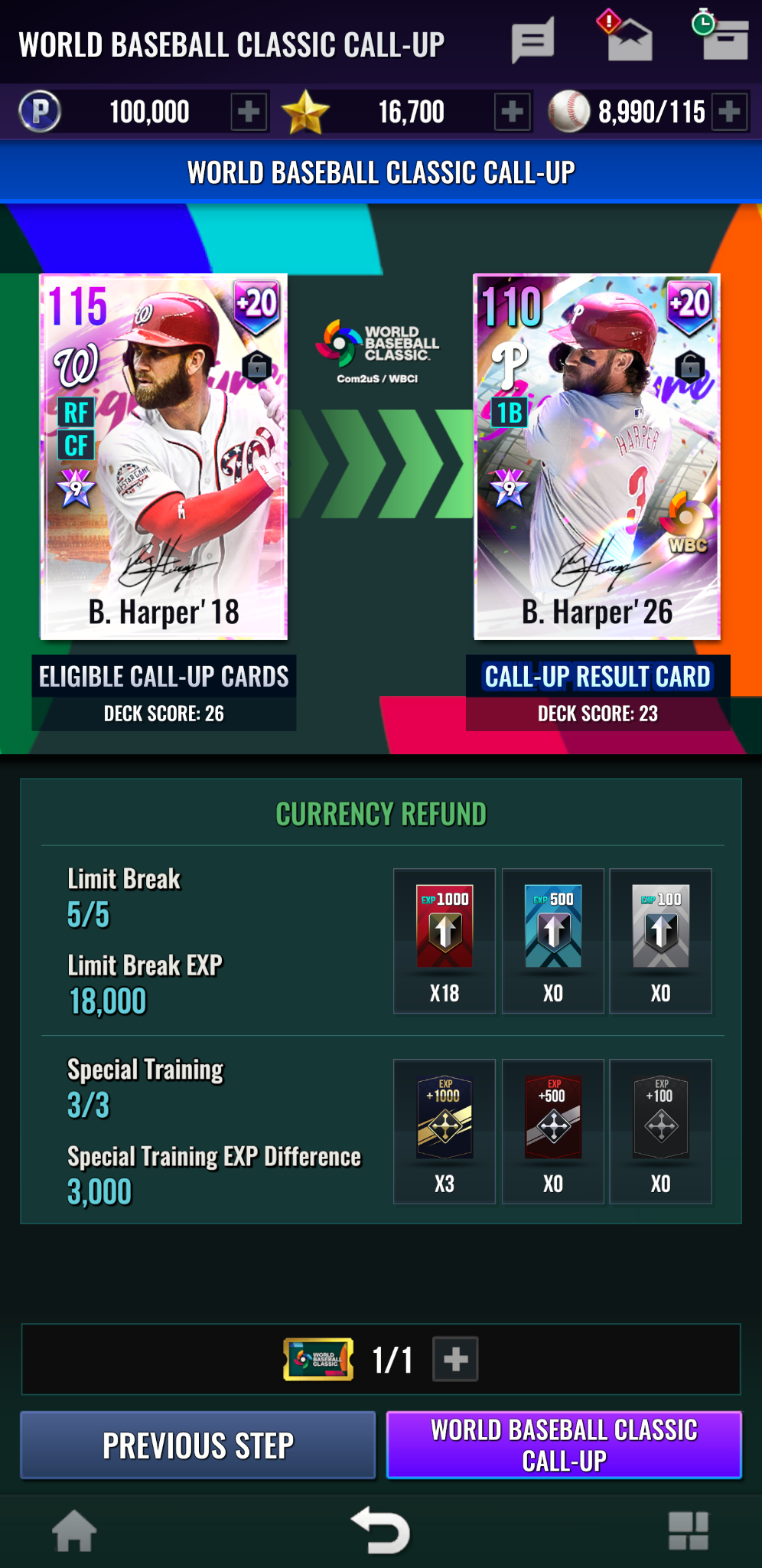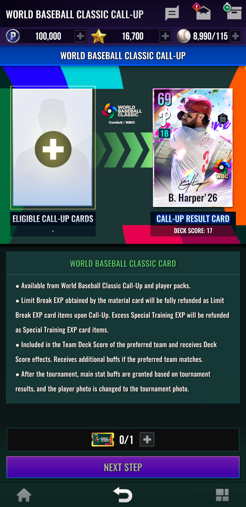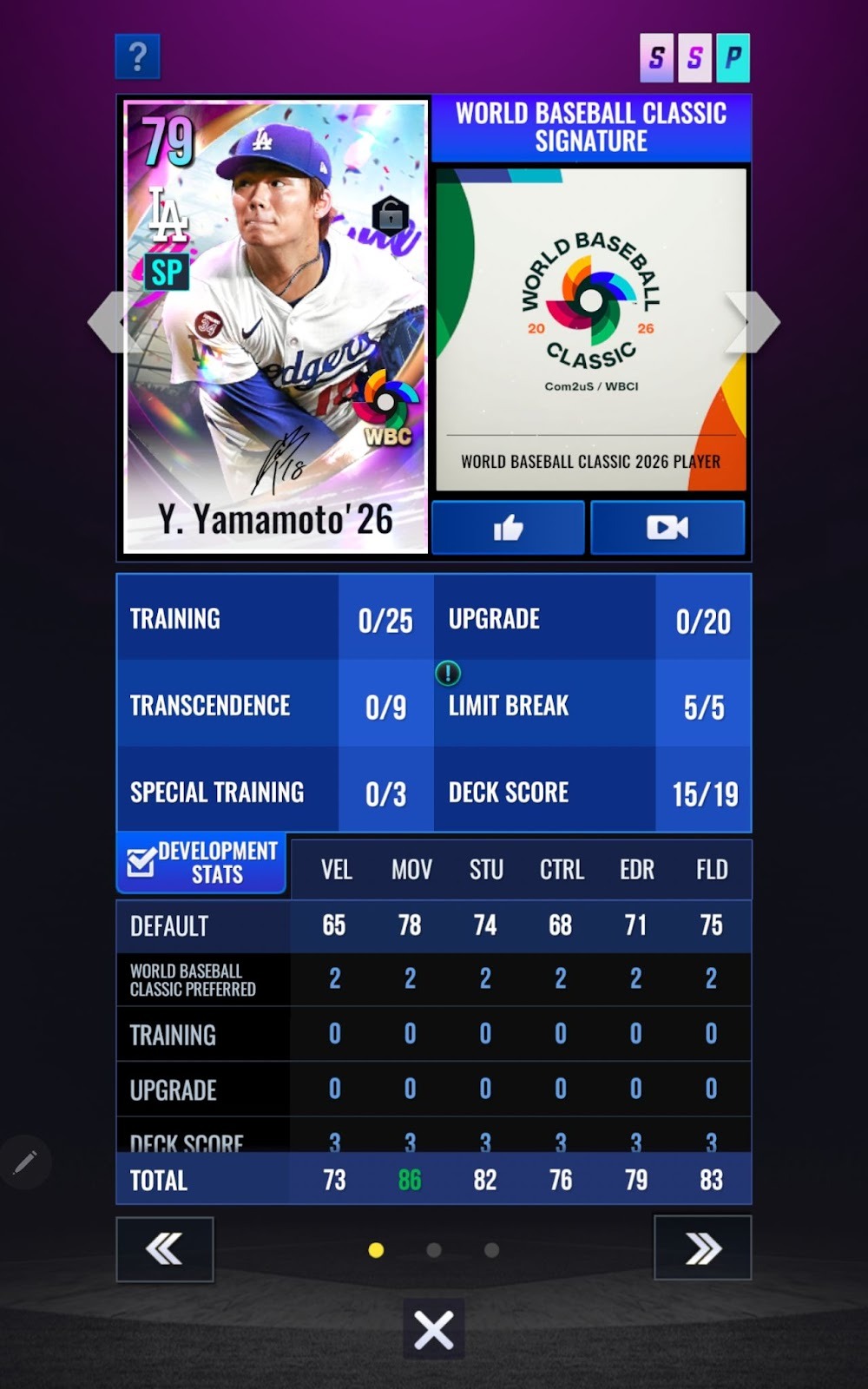 - World Baseball Classic選手カードは最大強化段階拡張のための限界突破が不要です。獲得した時点で20段階まで強化可能です。