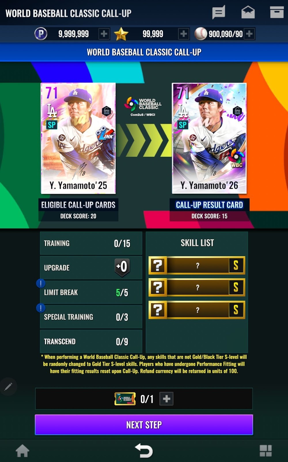 - World Baseball Classicカードはランクによって最大トレーニング突破段階が異なります。