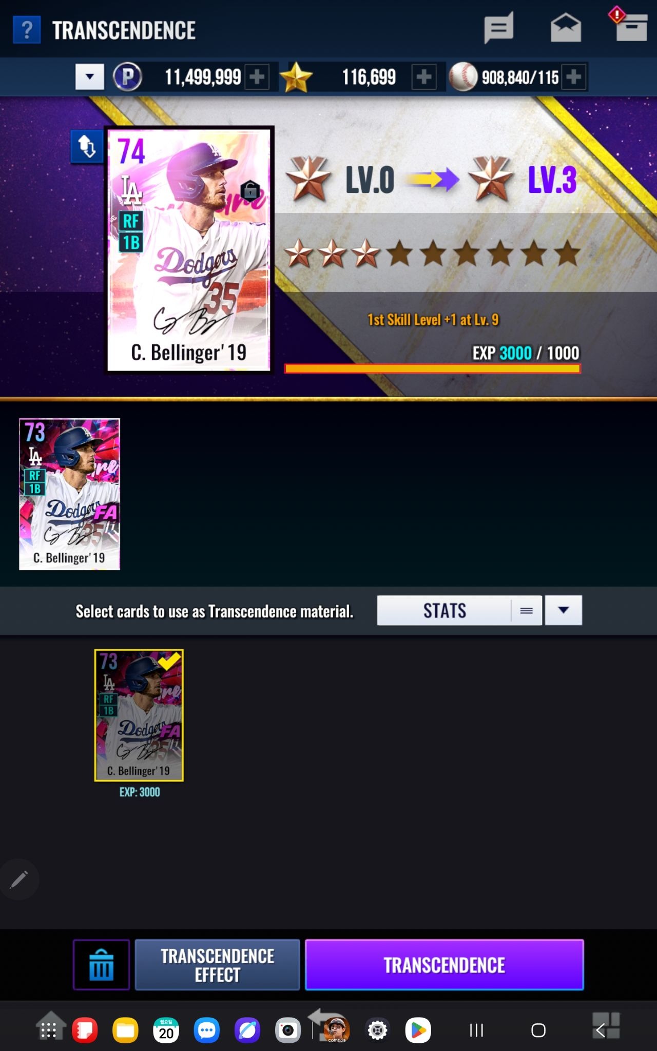 同じ選手のシグネチャーカードを素材として使用:3,000EXP獲得 ⇒ 超越Lv.3進行