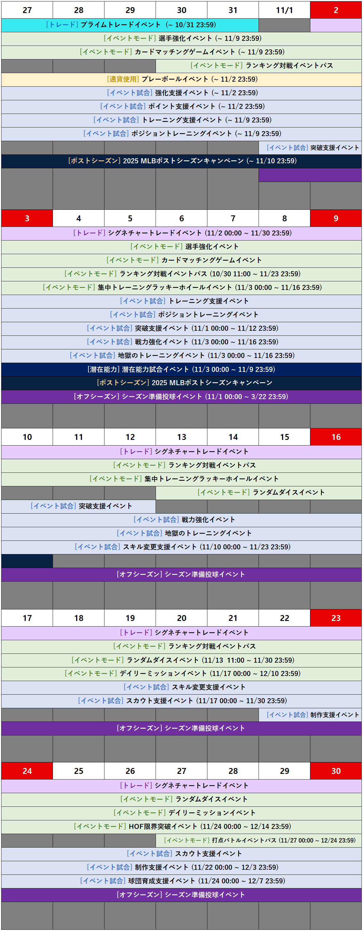 1. 強化支援イベント (11/24 00:00 ~ 12/7 23:59) → 球団育成支援イベント (11/24 00:00 ~ 12/7 23:59)