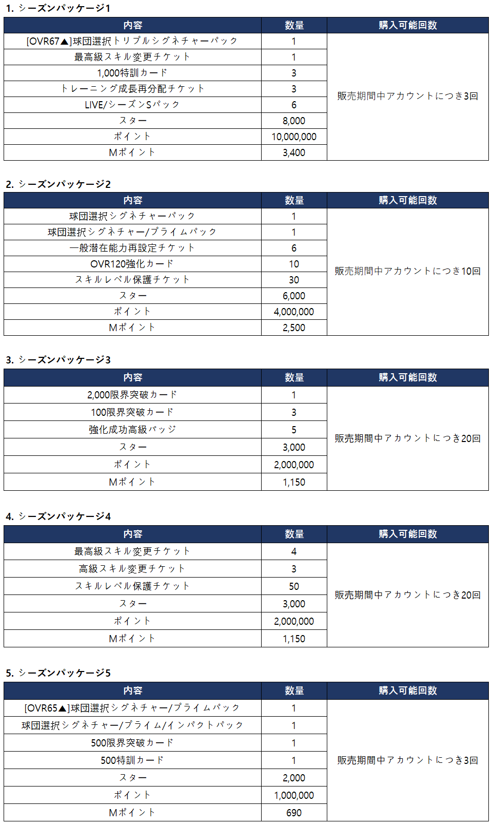 ▼ シーズンパッケージ合計購入報酬