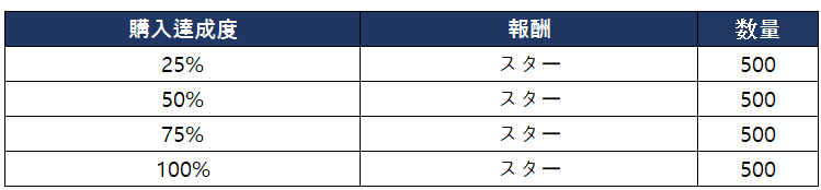 - 購入達成度に応じて以下の報酬を獲得できます。