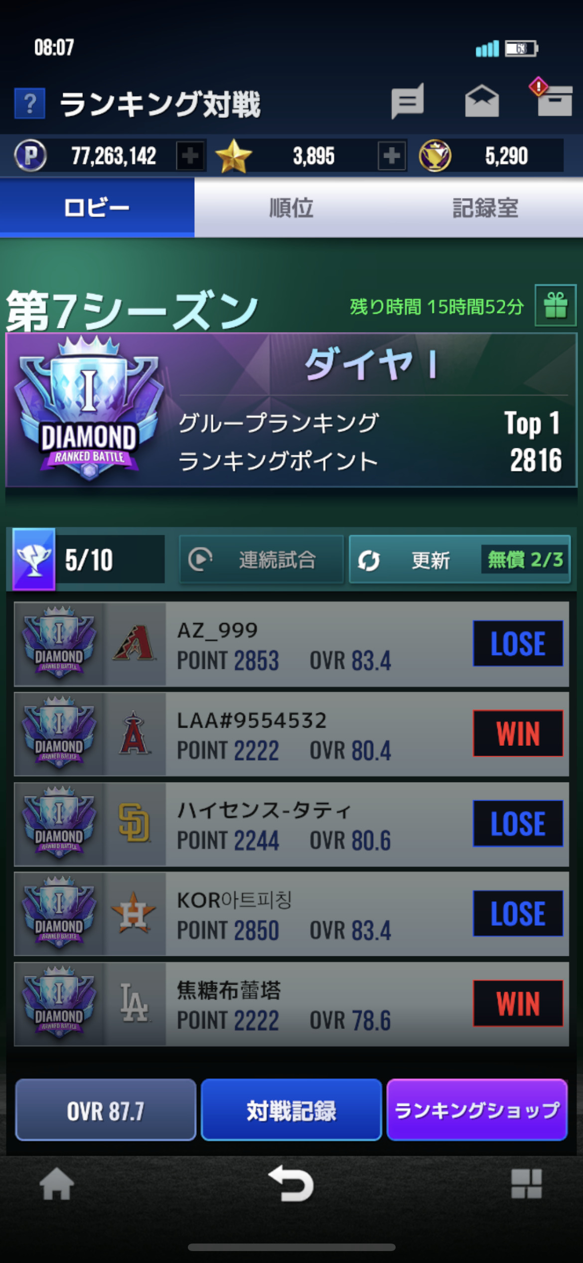ランキング戦の勝敗に何が関わっているのか明確にして欲しいのと、改善して欲しい。