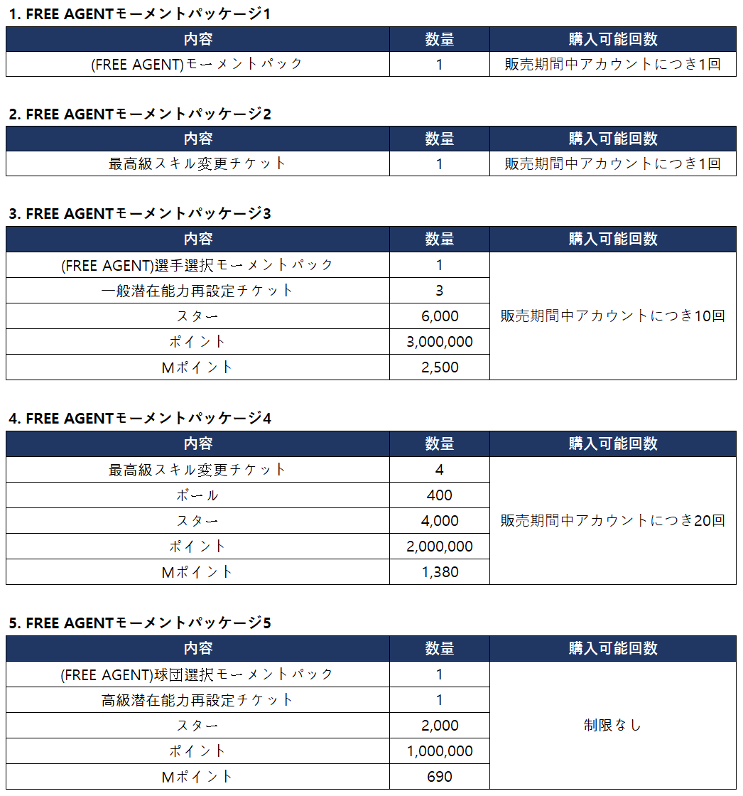 - FREE AGENT モーメントパッケージ1,2はスターで購入できる商品です。