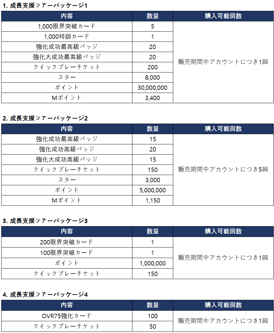 - 成長支援ツアーパッケージ3、4はスターとポイントで購入可能な商品です。