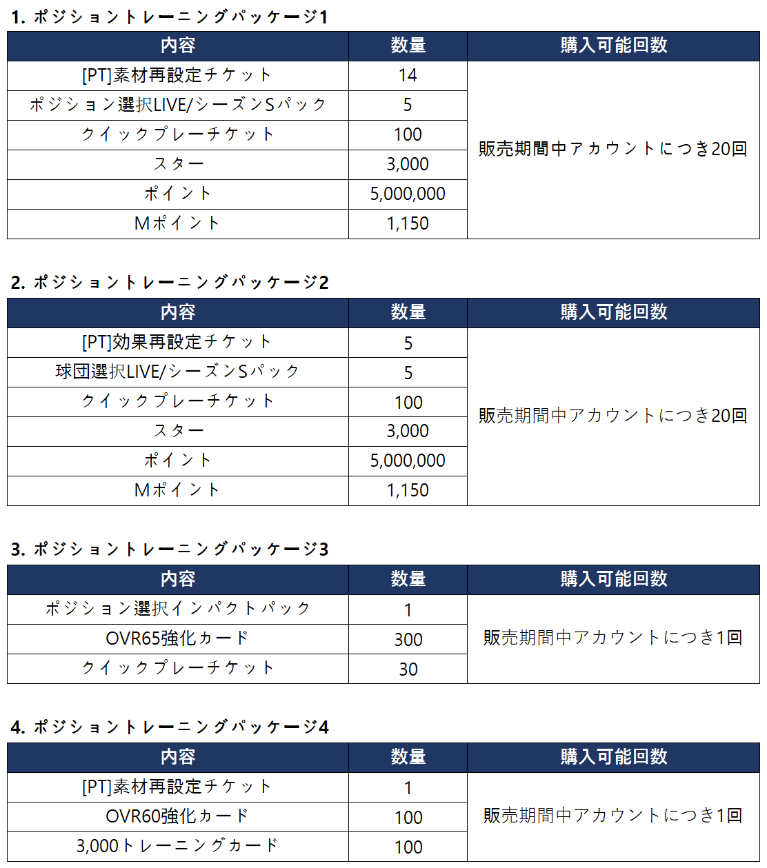 - ポジショントレーニングパッケージ4は無償で購入できます。