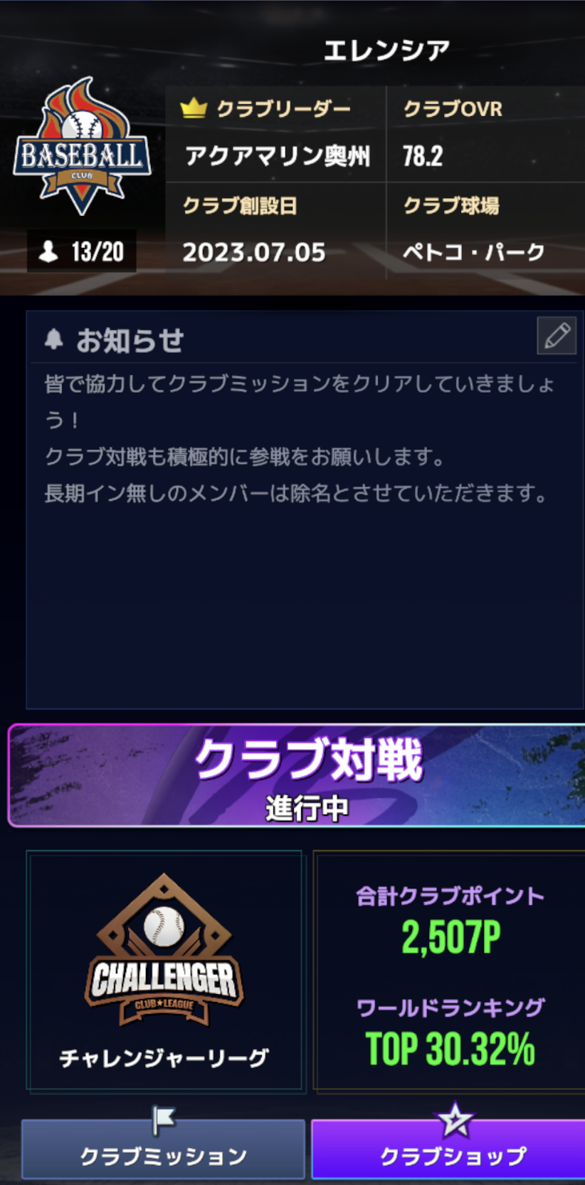 一緒にクラブマッチやミッション達成頑張ってくれるメンバーを募集しています。特に制限はありませんので気軽に参入ください(^_^)