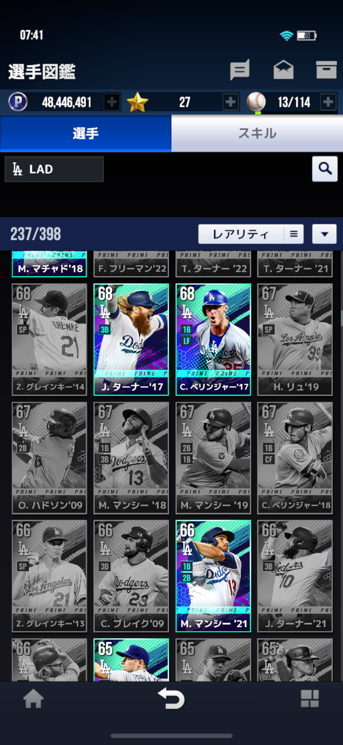 年末年始にかけて球団選択プライムパック(x2)及び球団選択シグネチャーパックをロサンゼルスドジャースで開けたんですが、いずれもJ.ターナーが当たりまして、さすがに確率的におかしいのではと思っております。J.ターナーが極端に当たりやすいなど何らかの不具合が起きていないでしょうか。また、パック開封の結果は下記の通りです。球団選択プライムパック(J.ターナー17.19)、球団選択シグネチャーパック(J.ターナー19)