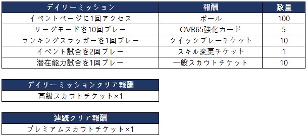 ※連続クリア報酬の獲得が中断されてから再度連続クリア報酬を獲得するためには、新たに2日以上連続でデイリーミッションクリア報酬を獲得する必要があります。