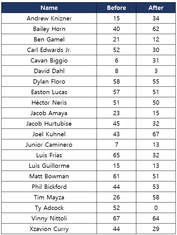 - 8/29(목) 업데이트 이전 개별 선수 획득 확률은 [개별 확률 페이지]에서 확인할 수 있습니다.