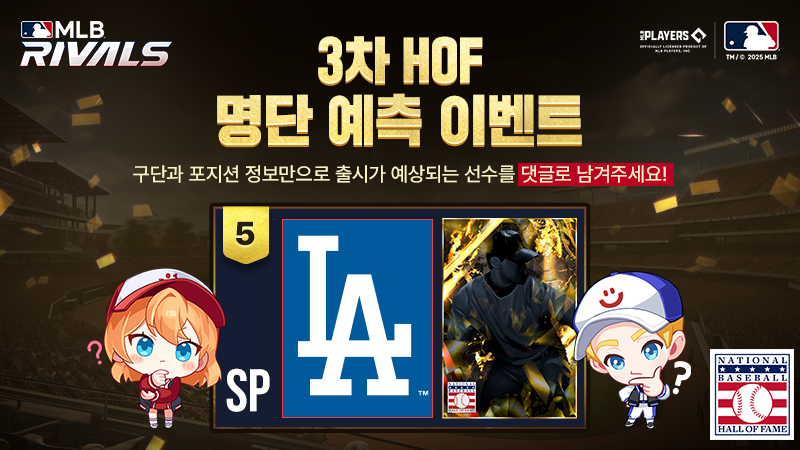 - 5일차에 공개된 3차 HOF 카드 명단을 예측하고 출시에 대한 기대를 댓글로 남겨주시면 참여 완료!