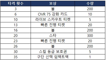 - 이벤트 기간 내 진행한 누적 타격 횟수에 따라 추가 보상을 획득할 수 있습니다.